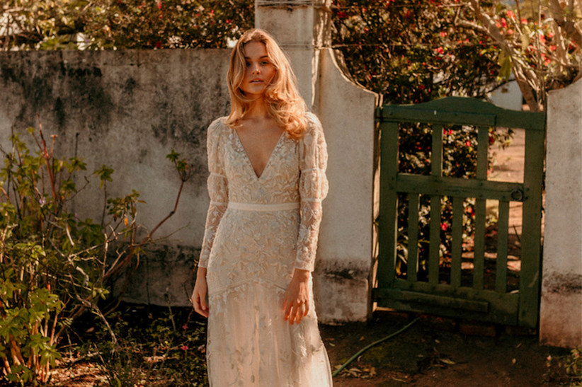 1- NO MAKE UP MAKE UP (EN LA FOTO SUPERIOR): dentro de las opciones de maquillaje para novias de día, esta viene full tendencia y apunta directamente a que menos, es más. Para conseguirlo debes usar un hidratante con color o una base ligera – jamás de un tono más oscuro que el de tu piel- y un rubor en el tono que a ti te acomode, que puede ir desde rosa hasta durazno, pero sin exagerar. Lo importante es que en los pómulos utilices iluminador de manera estratégica, de tal manera que la luz natural del sol juegue a tu favor dando en los puntos clave del rostro.
