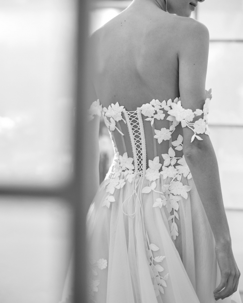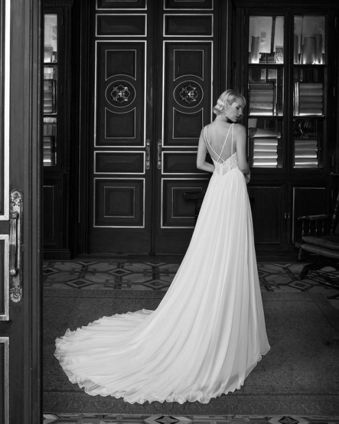 En Ilusions Novias nos inspiras tú, la mujer real. Nuestros vestidos de novia tienen el objetivo de que te sientan bien y te den la máxima confianza al mostrar tu mejor versión. Los vestidos de línea A son un buen ejemplo, ya que son favorecedores para todo tipo de silueta, al acompañar las curvas femeninas de forma sutil y elegante.