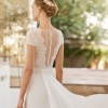 Su corte princesa irradia romanticismo y su cuerpo de encaje con escote corazón y palabra de honor le otorgan un punto atrevido. El modelo se completa con una espalda abierta, ideal para lucir en una ceremonia civil en verano.