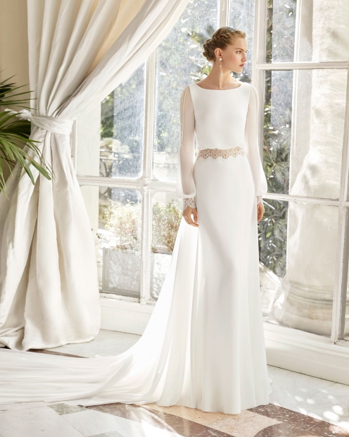 Incorpora una suave capa que brinda la opción de deslizarse desde el cuello o desde el talle. Disfruta como nunca en una boda civil en primavera luciendo esta espectacular pieza.