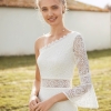 El vestido de novia de corte sirena que siempre habías soñado existe y se llama Nediva. Su sofisticado corte es ideal para una boda moderna y se ajusta espléndidamente al cuerpo. El acabado en crepe está realzado por el encaje de pedrería, y el escote ilusión sobre escote plunge es sencillamente impresionante. Con forro moldeador.